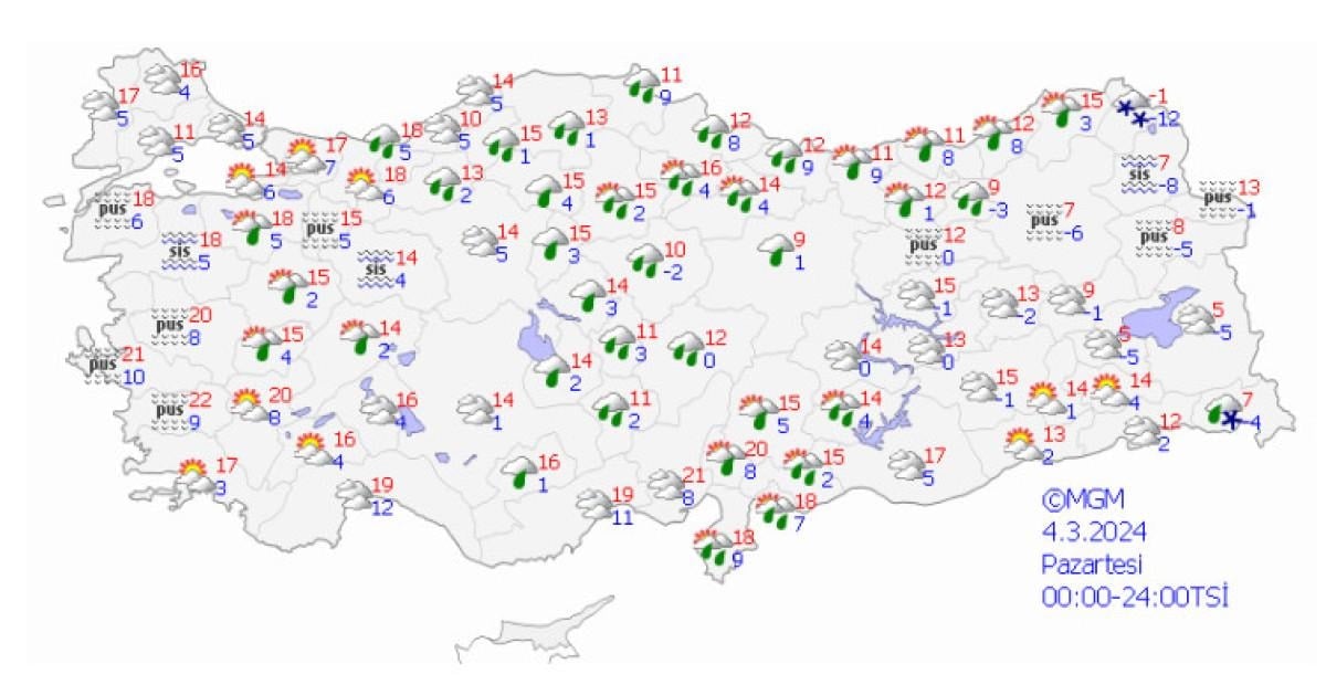 Pazartesi Ankara ve İstanbul'da sıcaklık 14 derece, İzmir'de 21 derece olacak.