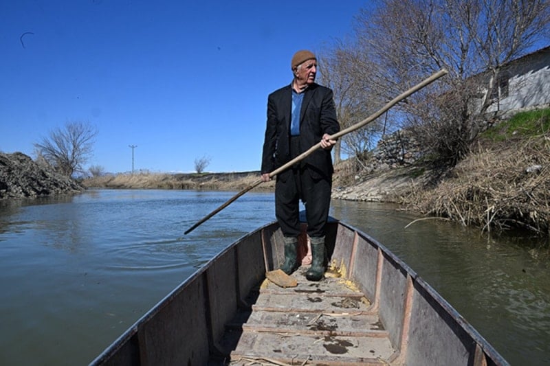 Oğul, göldeki kanallarda kayığıyla açılarak balık avlıyor ve misafirlerine ikramlarda bulunuyor. Kuraklık nedeniyle balık miktarının azaldığını belirten Oğul, artık gün boyu 2-3 kilogram balık tutabildiğini söylüyor.