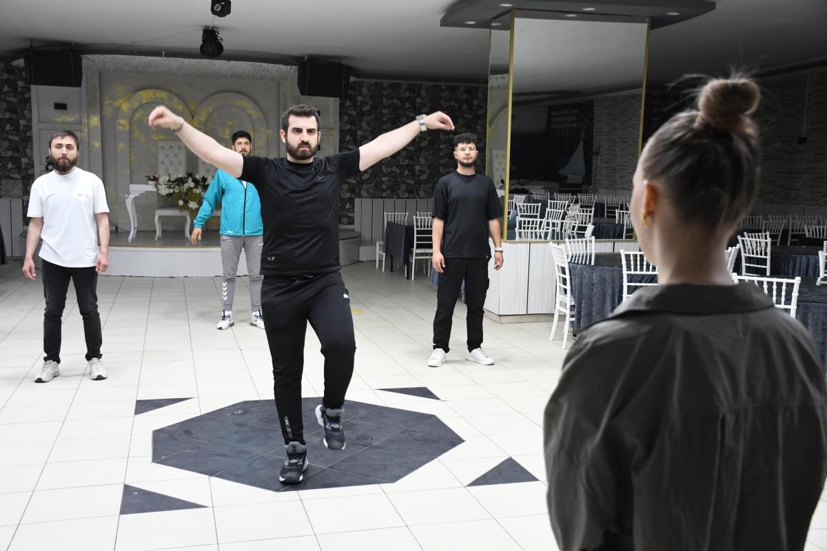 Çift, düğün öncesi düzenli olarak dans provası yaparak Zeybek figürlerini öğreniyor.