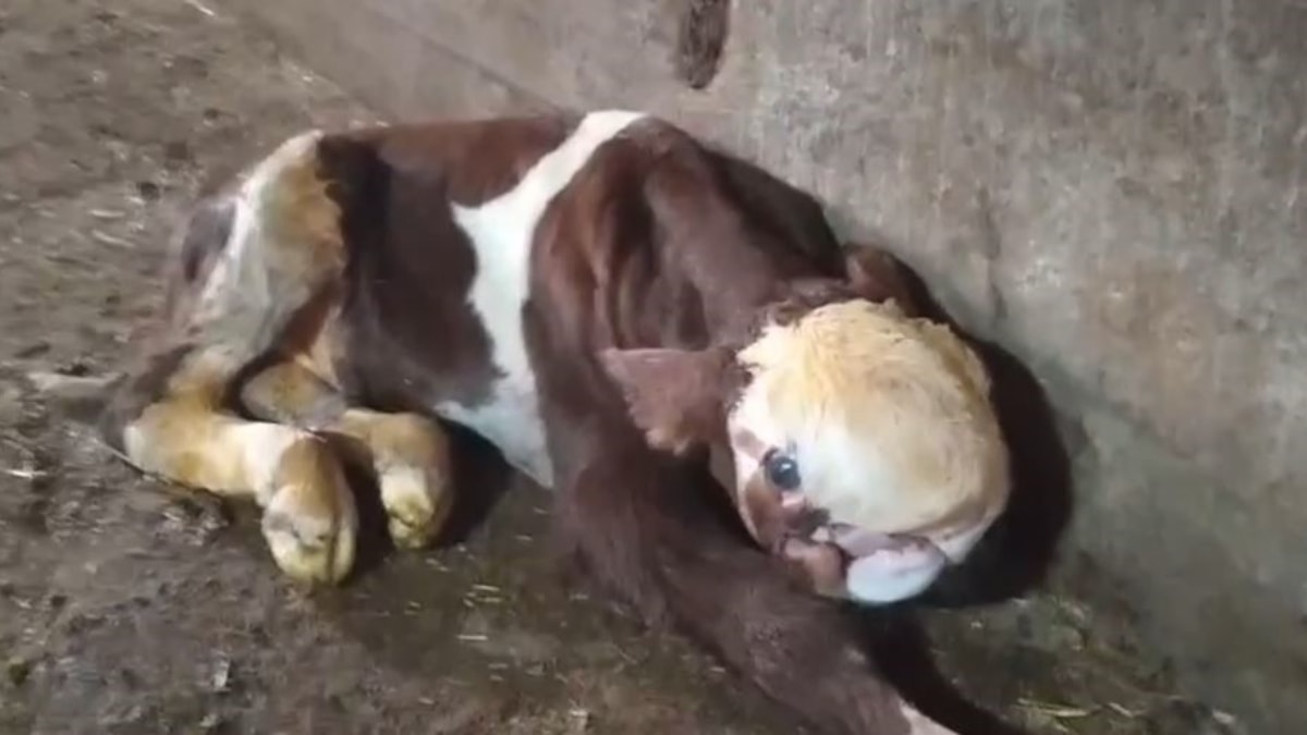 Buzağının kafa yapısının normalden çok farklı olduğunu gören besici, o anları kayda aldı.