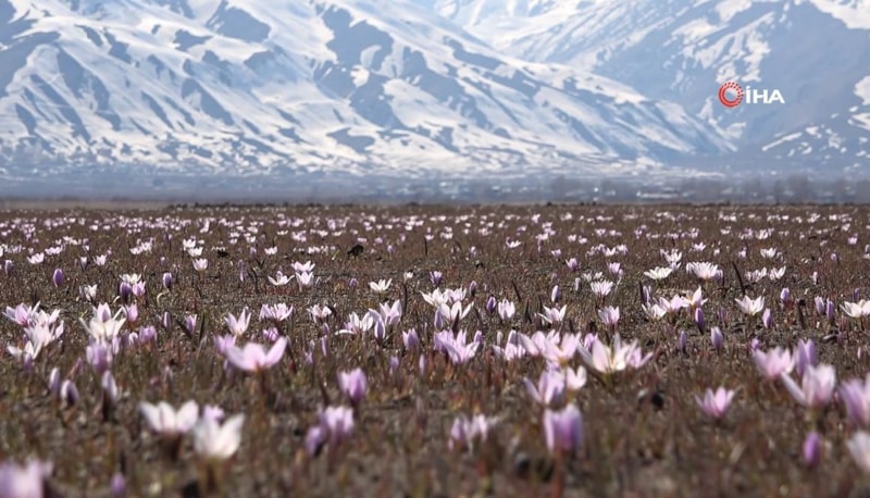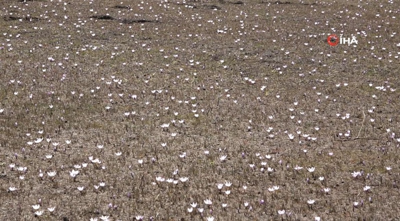 Beyaz bir örtü gibi ovayı süsleyen kardelenlerin etrafını çeviren karlar ise ayrı bir güzellik katıyor.