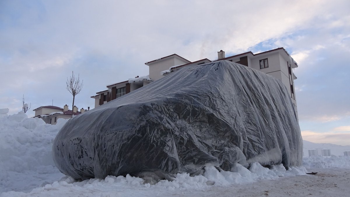Yüksekovalı bazı sürücüler evlerinin önündeki araçların üzerini naylon, battaniye ve brandayla kapatmaya çalıştı.