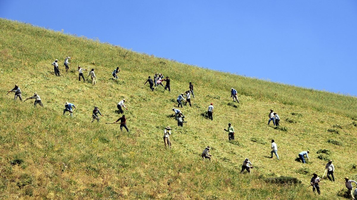 Yaklaşık 50 kişi ile imece usulü ile tıpanla engebeli yerlerde ot biçiyoruz. Bu aynı zamanda gelenek haline getirdiğimiz bir şey. Bugün kardeşimin, yarın başka bir akrabamızın otunu biçeriz kimin ne sıkıntısı olursa el birliğiyle tırpanlarımız hazırdır." diye konuştu.
