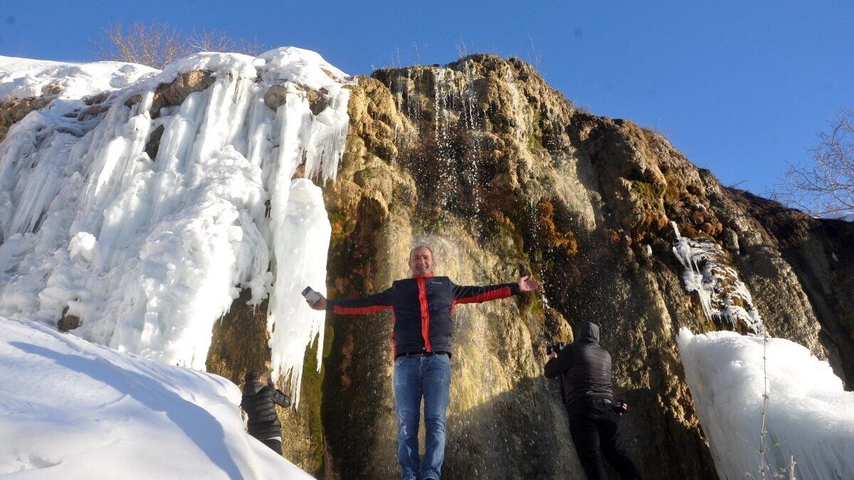 Yazın gözde mekanlarından biri olan bölge, kışın da ziyaretçilerine keyifli anlar yaşatıyor. Soğuk havaya aldırış etmeyen vatandaşlar şelaleye gelerek bir yandan geziyor, bir yandan da bol bol fotoğraf çektiriyor.