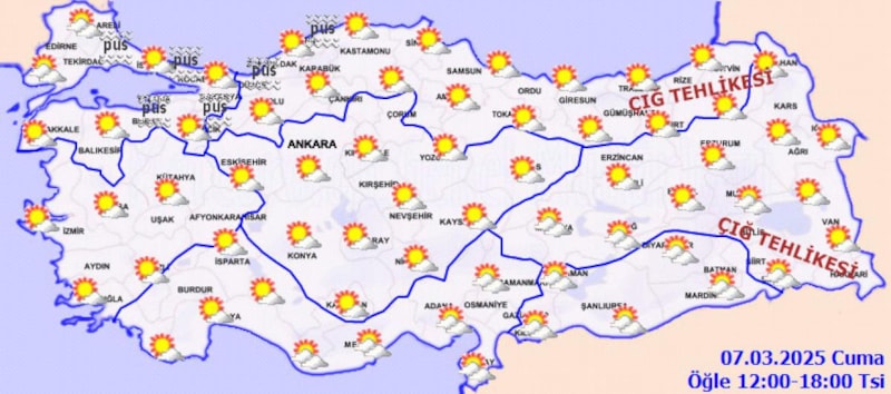 Doğu Karadeniz’in iç kesimlerinin yüksekleri ile Doğu Anadolu’nun yüksek ve dik yamaçlarında çığ tehlikesi bulunmaktadır." notu düşüldü.