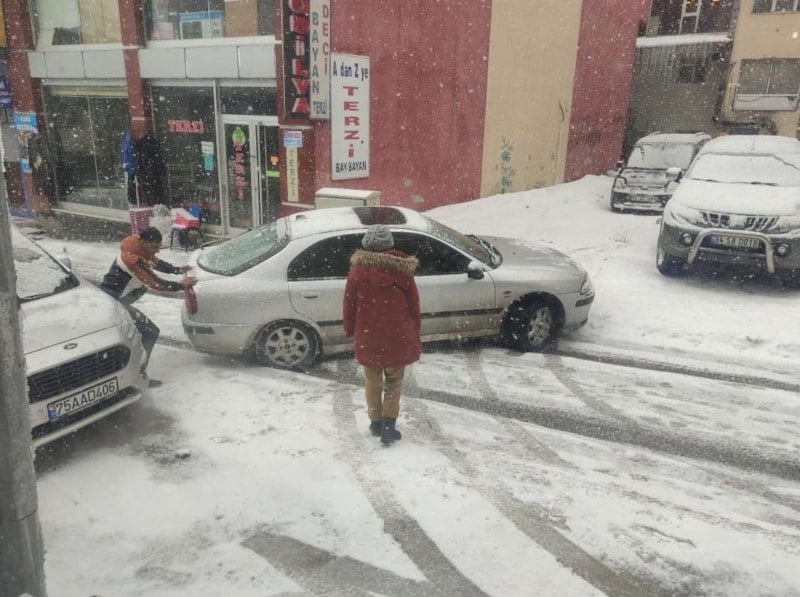 Belediye ekipleri, ulaşımın olumsuz etkilenmemesi için ana güzergahlarda çalışma yaparken, yaklaşık 2 aydır bahar havası yaşanırken etkili olan mart karı nedeniyle vatandaşlar da ev ve iş yerlerinin önünde ve araçlarının üzerinde biriken karları temizlemeye başladı.