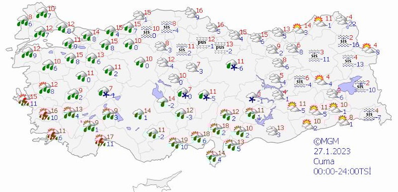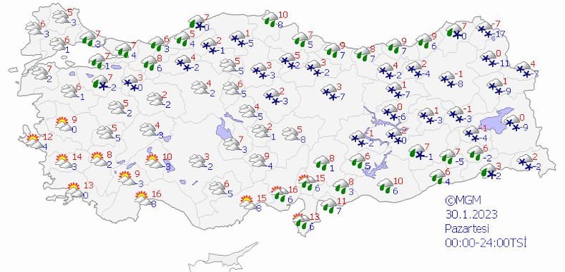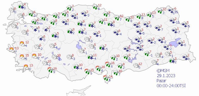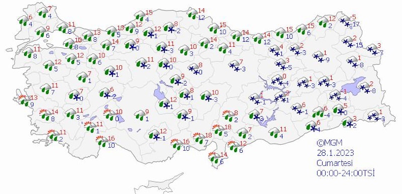 "Cumartesi için yurdun genelinde yağış bekliyoruz, yağmur ve sağanak şeklinde. Özellikle batı bölgelerin iç kesimlerinde ve yükseklerinde karla karışık yağmur ve kar yağışını göreceğiz. Doğu Anadolu Bölgesi'nde kar yağışları görülecek. Özellikle doğu bölgelerimizde ve Karadeniz'in iç kesimlerinde pazar ve pazartesi günü için kar yağışı örtü bırakacak."