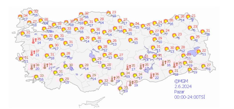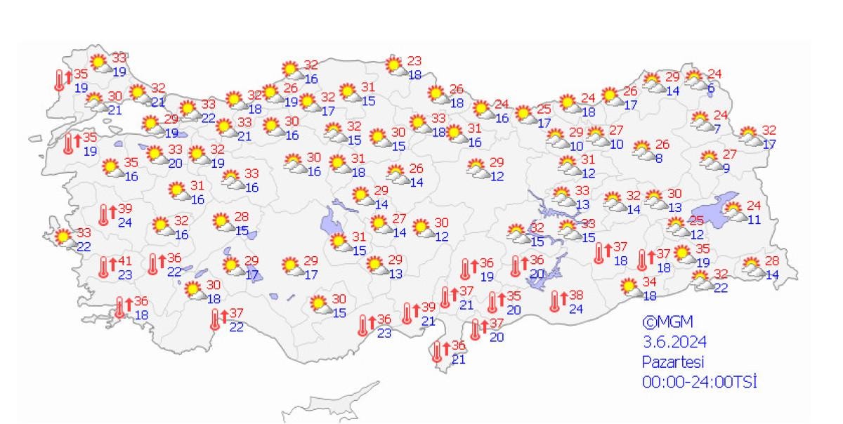 Sıcaklıkların birçok ilde 35 dereceyi aşması, bazı bölgelerde ise 40 dereceye yaklaşması tahmin ediliyor.