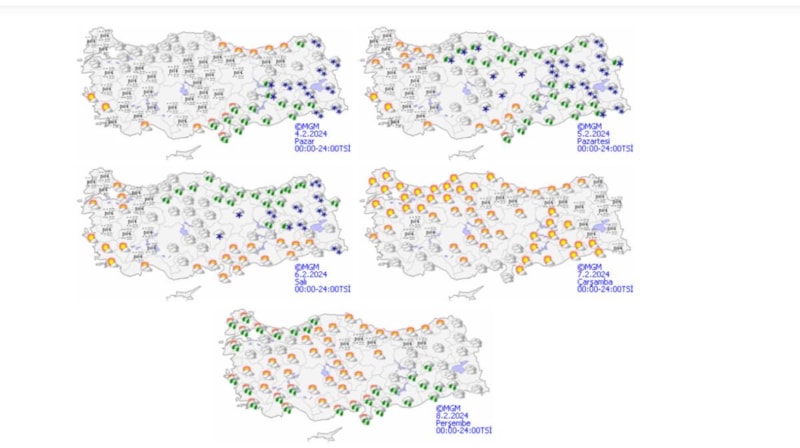 Yağışların kıyı kesimler ile Güneydoğu Anadolu'da yağmur ve sağanak, diğer yerlerde karla karışık yağmur ve kar şeklinde olması bekleniyor. İç ve doğu kesimlerde yer yer pus ve sis ile birlikte buzlanma ve don olayı bekleniyor. Doğu Karadeniz’in iç kesimleri ile Doğu Anadolu’nun kuzey ve doğusunda çığ tehlikesi bulunmaktadır.