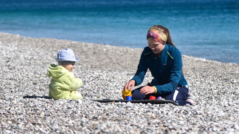 Sahile bebeğiyle gelen bir kadın kumların üzerinde çocuğuyla oynarken, rüzgarlı havaya aldırış etmeyen bir kişi de denize girerek yüzdü.