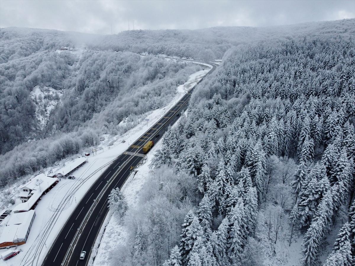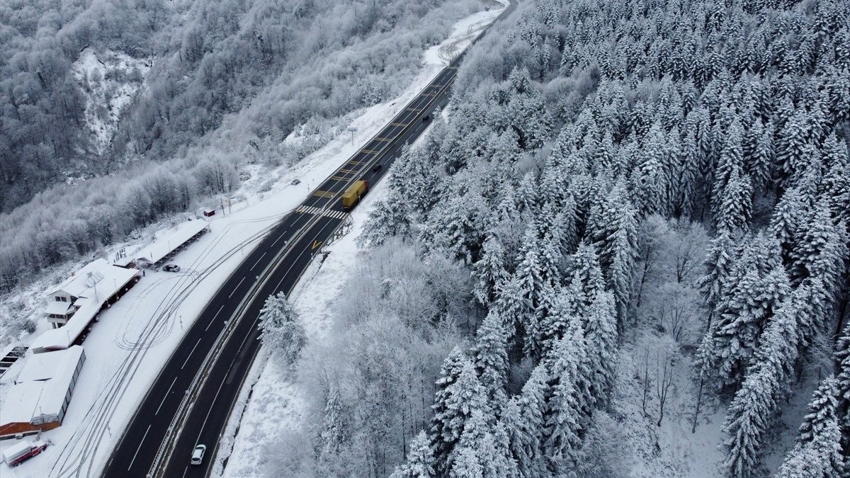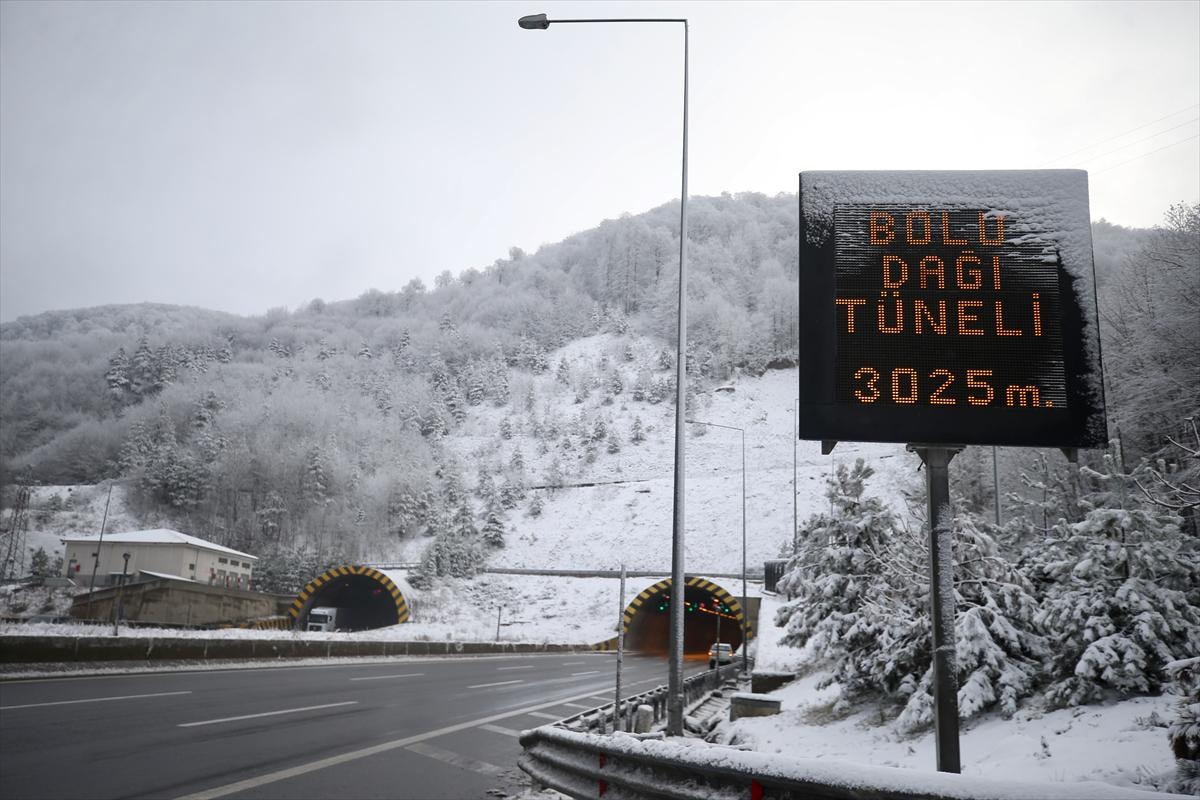 Bolu: Anadolu Otoyolu ve D-100 kara yolunun Bolu Dağı kesiminde kar yağışı aralıklarla devam ediyor.