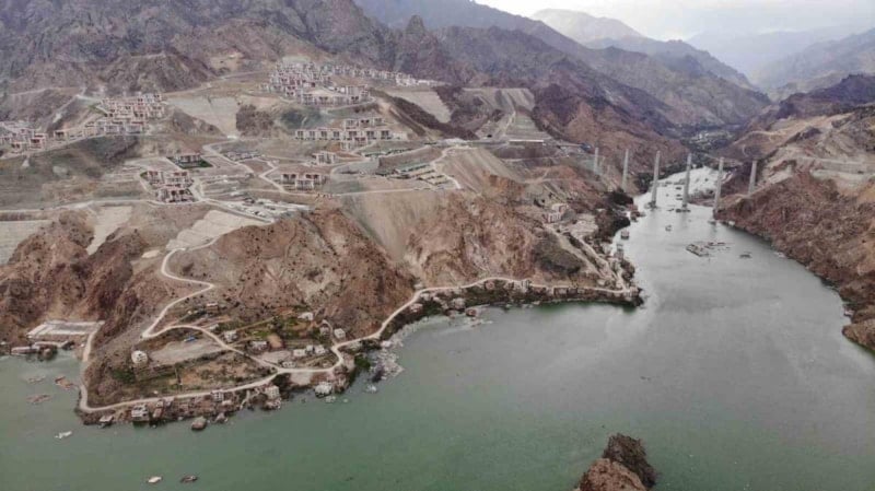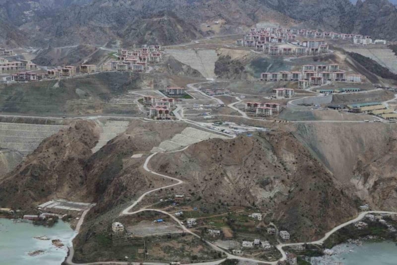 İlçenin üst kısmında bulunan Yansıtıcılar-Sakut mevkiinde 144 hektarlık alanda inşa edilen yeni yerleşim yerinde yaşayanlar, su tutan eski ilçe merkezini izleyebiliyor.