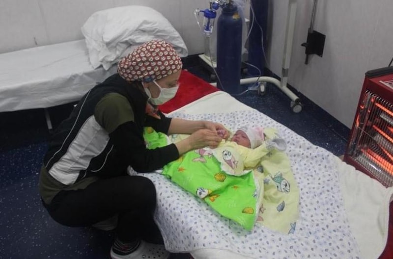 Kahramanmaraş merkezli depremlerin ardından yüzer hastaneye dönüştürülen TCG Bayraktar gemisinde depremzede hamile kadın, bir kız bebek dünyaya getirdi.