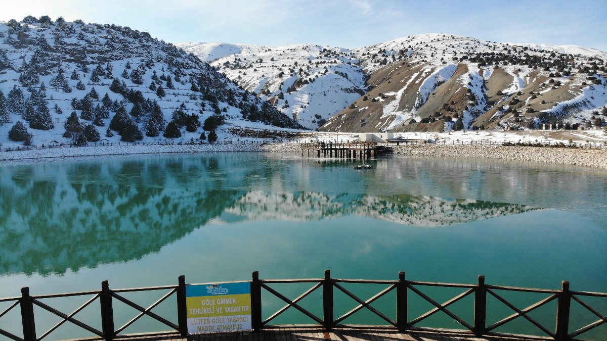 Erzincan'da yüzeyi buz tutan Ardıçlı Gölü ViDEO