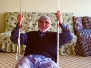 Zonguldak'ın Ereğli ilçesinde yaşayan 87 yaşındaki Mustafa Sevim'in salıncak keyfi görüntülendi.
