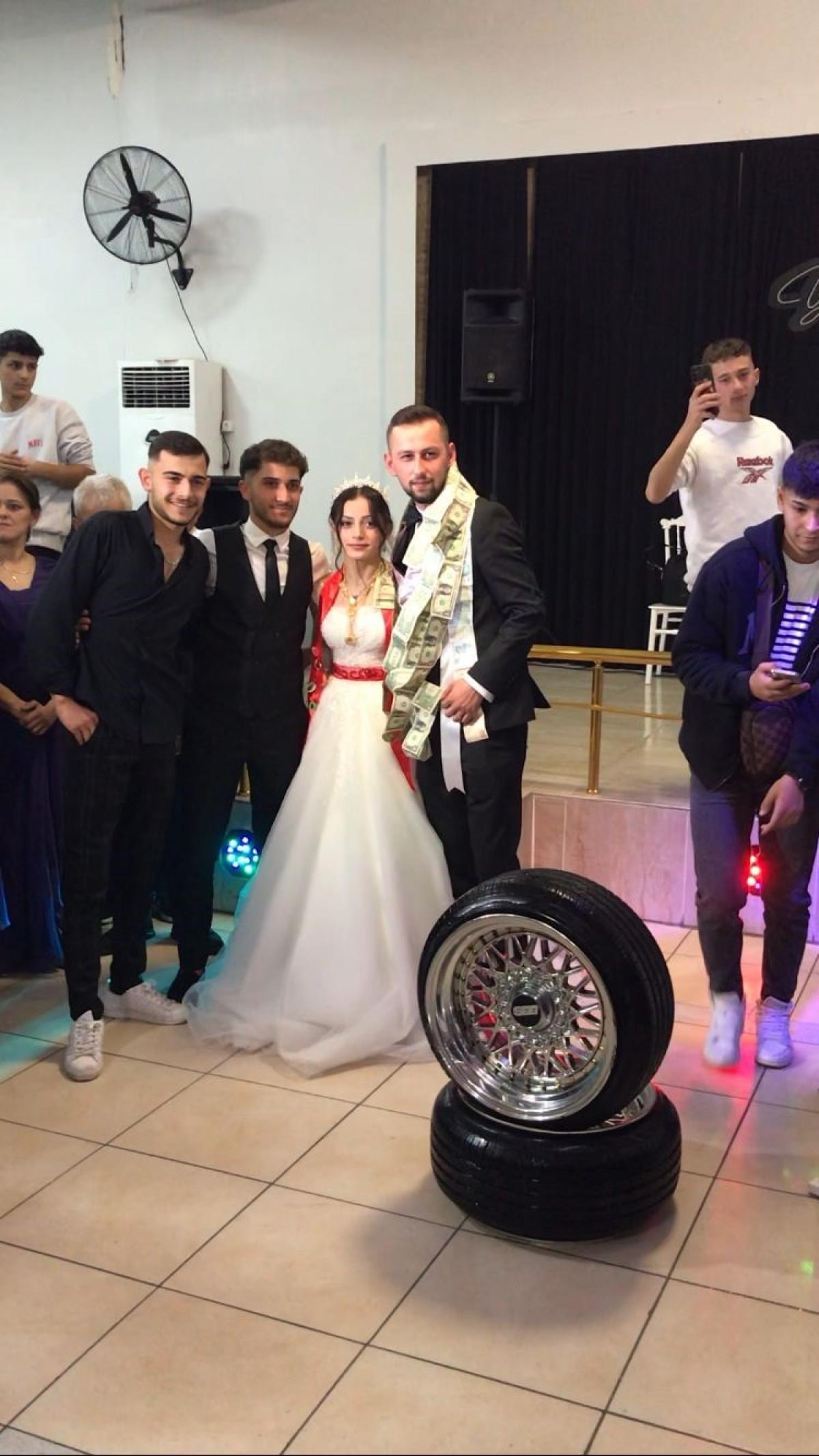 İlçede esnaflık yapan 18 yaşındaki Yiğitcan Demirer ise, 35 bin lira değerindeki iki adet jant ve lastikle düğün salonuna girdi.