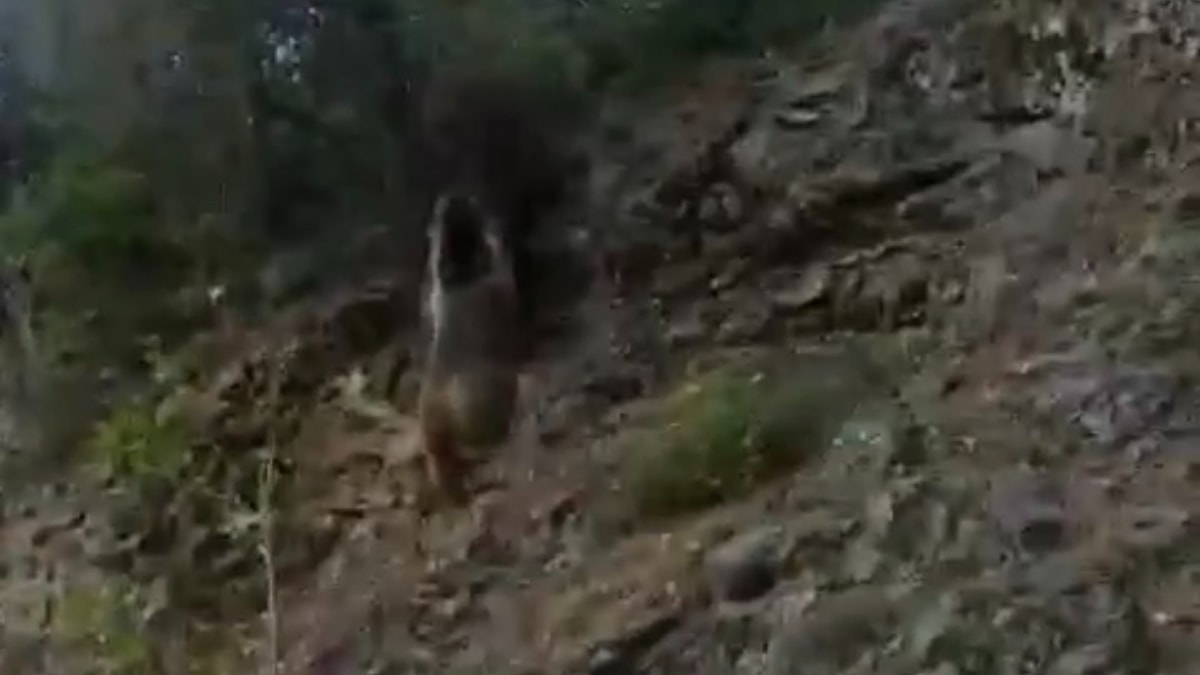 Ayı, kendisine seslenen Ergirdi'ye bir süre baktıktan sonra ormanlık alana girerek gözden kayboldu.