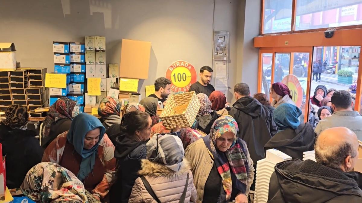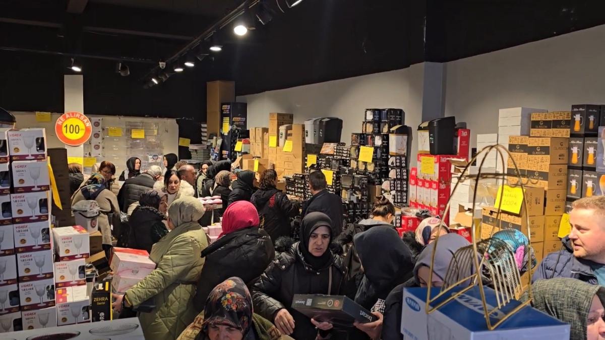 Mağaza içinde de izdiham yaşanırken cam bardak, sürahi ve saklama kabı gibi birçok ürün, kalabalık nedeniyle kırıldı.