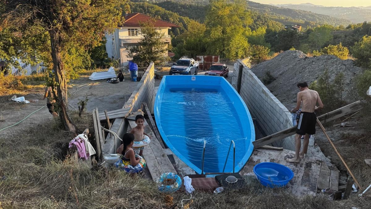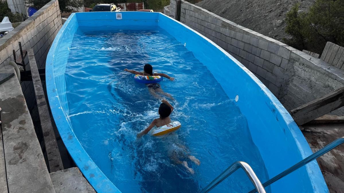 İstanbul'da yat sektöründe çalışıyorum. Bu yıl sıcaklar artınca aklıma bu fikir geldi. Hayalimi gerçeğe dönüştürmek için kalıbı, çekiciyle 40 bin TL nakliye masrafıyla getirdim. Bahçemde sondaj var, havuzumuzu kendi suyumuzla doldurduk ve hijyenine dikkat ederek hazır hale getirdik. Yatlarımızı denizde kullanıyoruz, şimdi karada kullanalım dedik. Havuz inşaatımız hâlâ devam ediyor ama çocuklarım çok mutlu.