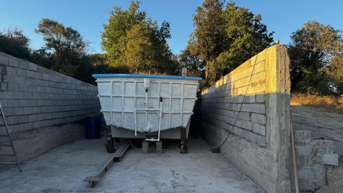 İstanbul'da imal ettiği 17 metrelik yat kalıbını 270 kilometre uzaklıktaki köyüne çekiciyle getiren Demircan, bahçesine dönüştürülebilir bir havuz yaptı.