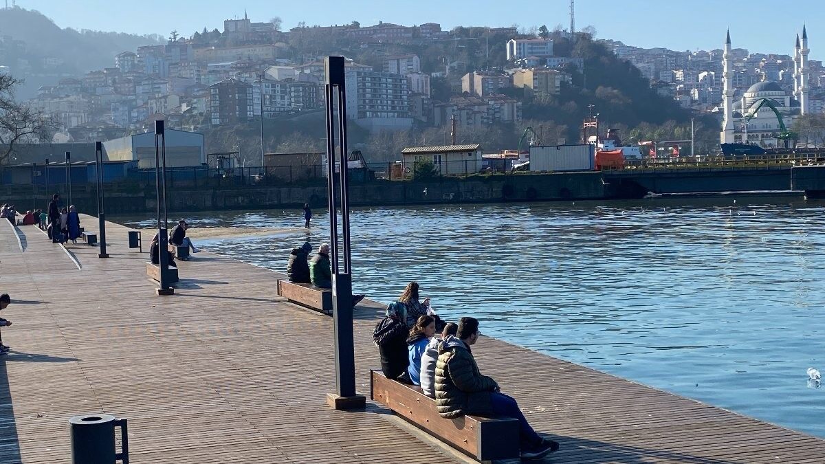 Zonguldak’ta yeni yılın son günlerinde hava sıcaklarının 13 dereceye göstermesinin ardından vatandaşlar kendilerini sahile attı.