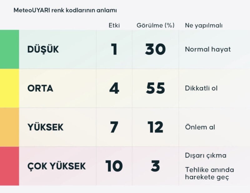MeteoUYARI renk kodları ne anlama geliyor? İşte risk seviyeleri ve yapılması gerekenler: