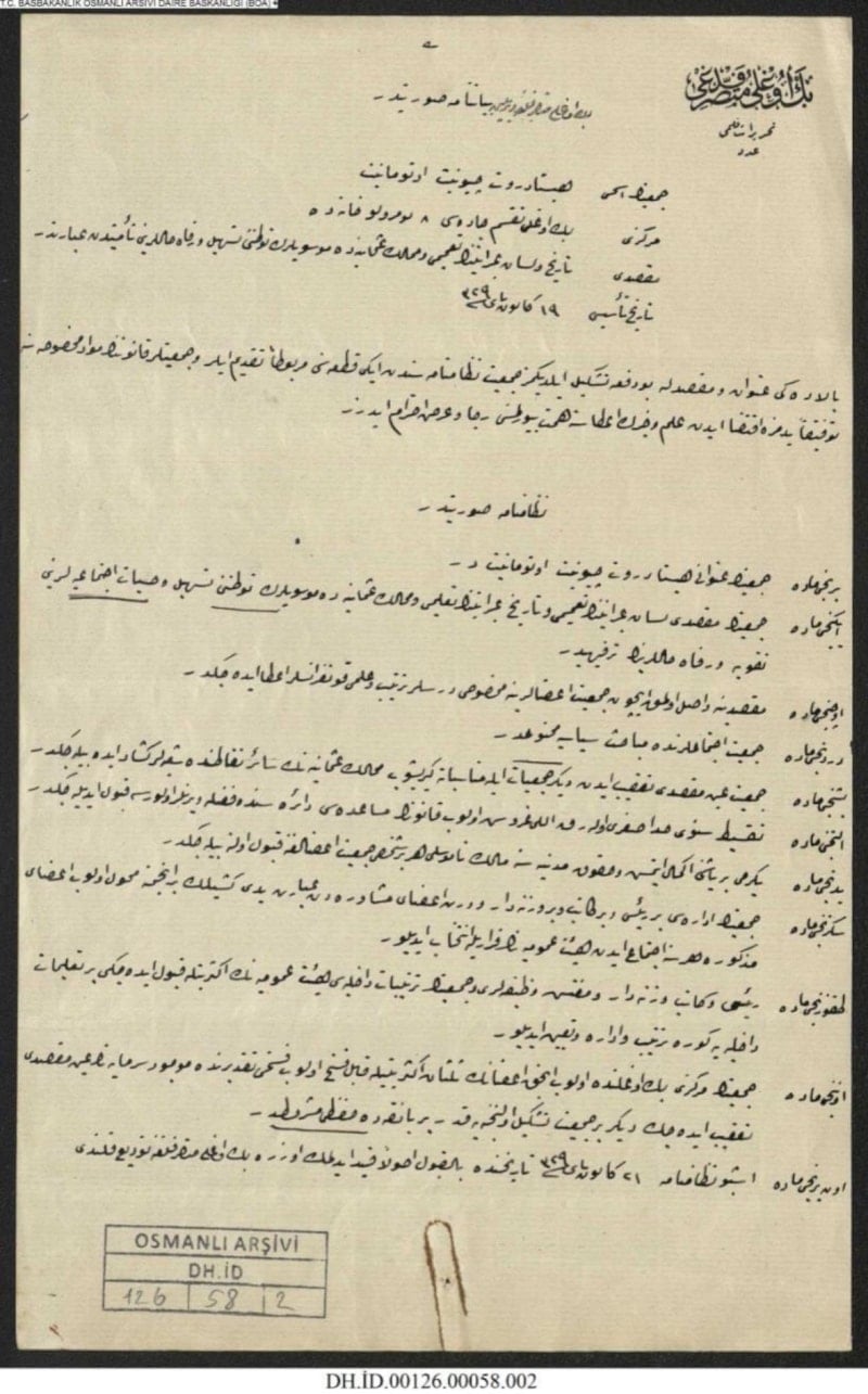 Devlet Arşivlerindeki DH. İD. 1332 R.27, 126/58 numara ile kayıtlı bulunan belgelerde bu derneğin ilginç kuruluş ve kapatılış hikâyesi yatar.