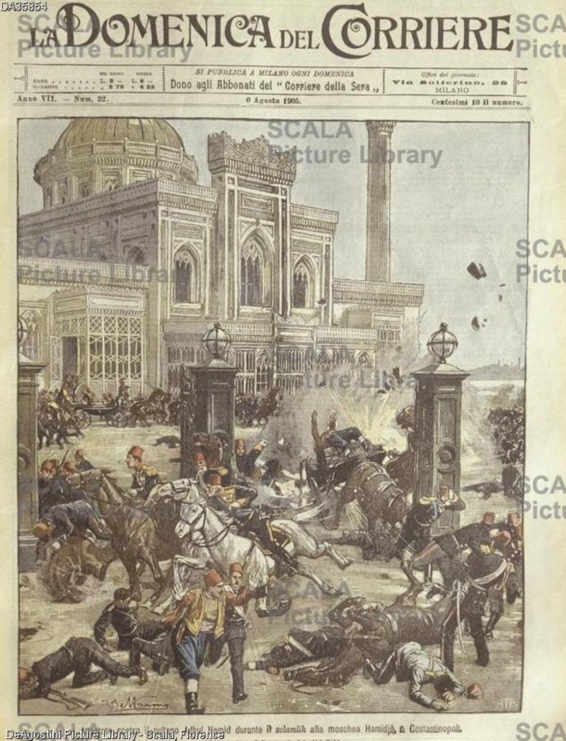 Suikastçiler ise Yıldız Camii’nin bugün park yapılmış olan bahçesinde Padişahın dışarı çıkmasını heyecanla beklemektedir. Gecikme onları iyice meraklandırmıştır. Nasıl meraklanmasınlar ki: Cuma selamlıklarına defalarca gelip gitmiş ve Padişahın camiden arabasına 1 dakika 42 saniyede ulaştığına varıncaya kadar her detayı inceden inceye hesaplamışlardı. Saatli bomba o 1,42 dakikaya göre ayarlanmıştı. Ne var ki, Sultanın tam kapıdan çıkarken koyulduğu ayaküstü sohbet planlarını alt üst edecektir.