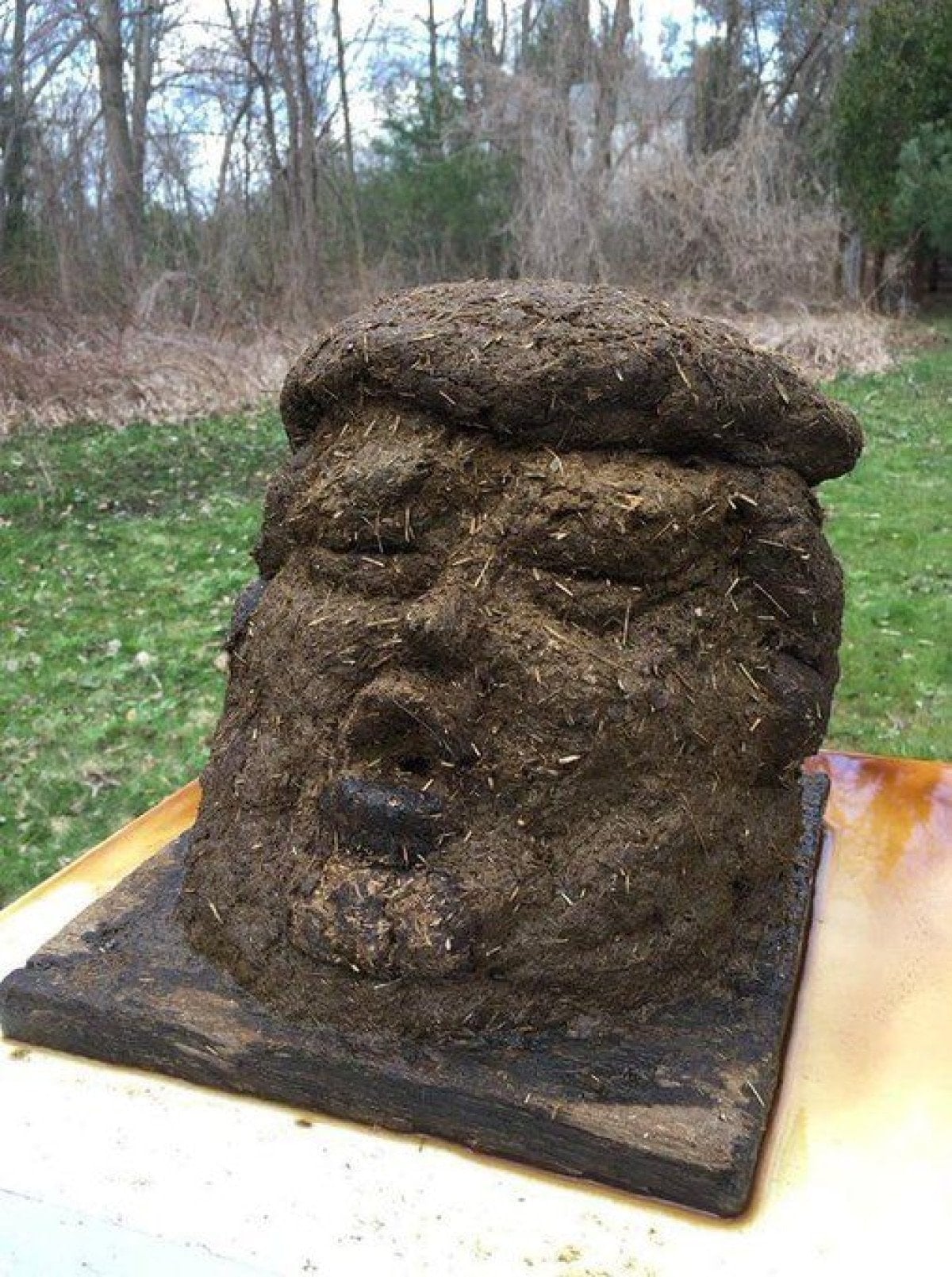 **Venezuelalı bir sanatçının hayvan dışkısından yaptığı Donald Trump büstü.
