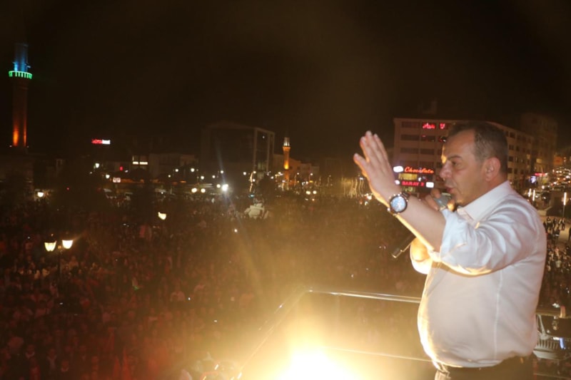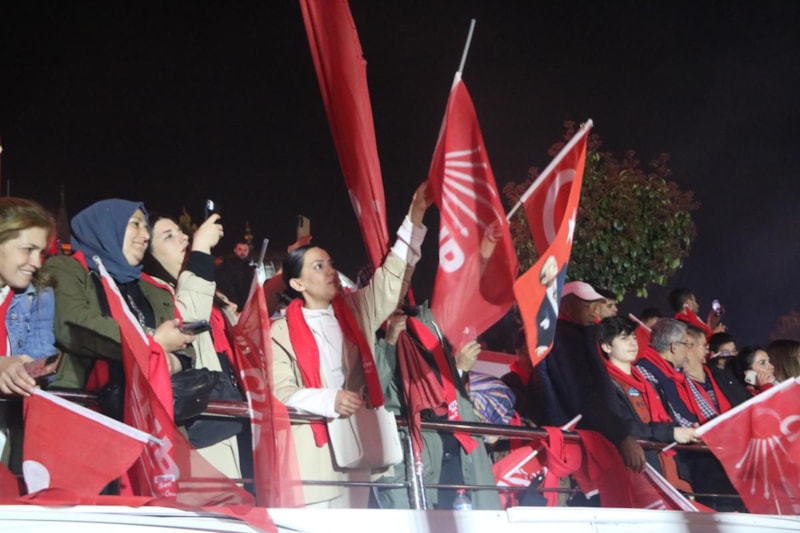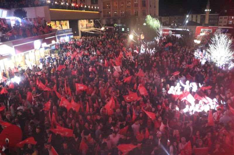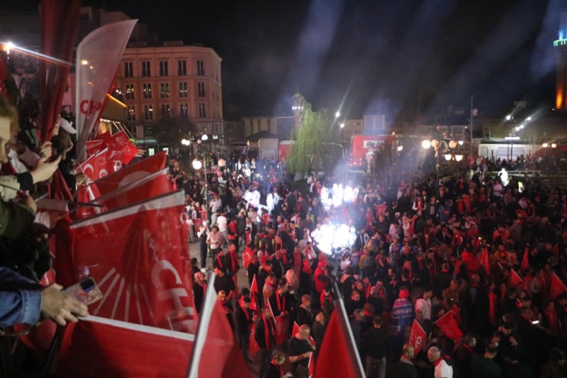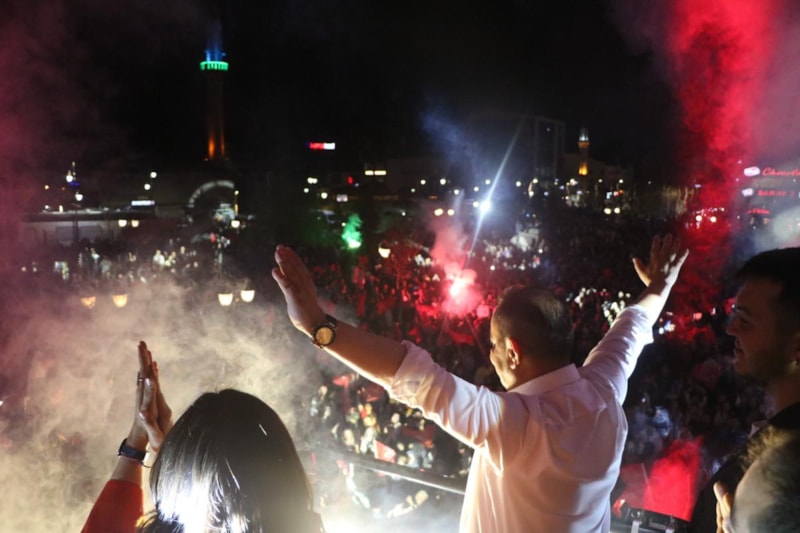 Havai fişekler eşliğinde binlerce vatandaş, Türk bayraklarıyla ellerinde Özcan'ın seçim zaferini coşkuyla kutladı.
