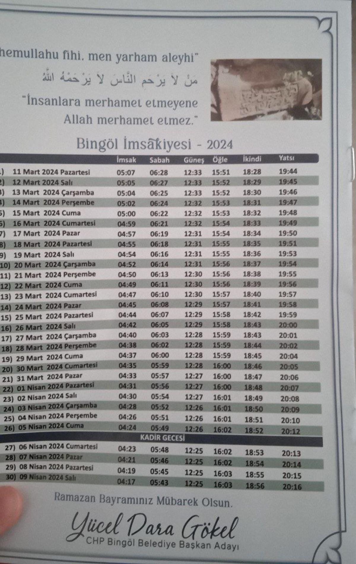 CHP'li adayın dağıttığı imsakiyeyi yanlış bastılar