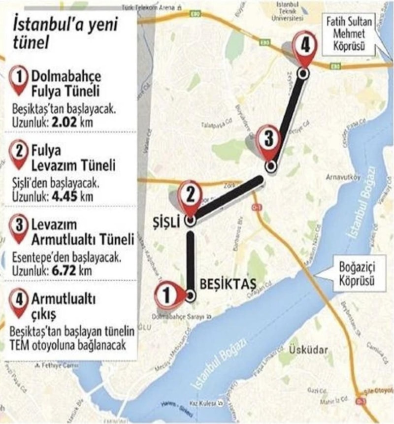 İstanbul trafiğini rahatlatması için büyük umutlarla İBB'nin AK Parti yönetiminin başlattığı projede 2019 seçimlerine kadar 220 milyon TL harcandı ve Dolmabahçe portal, Fulya Şaft ve Levazım portalden olmak üzere toplam 1400 metre tünel imalatı yapıldı.