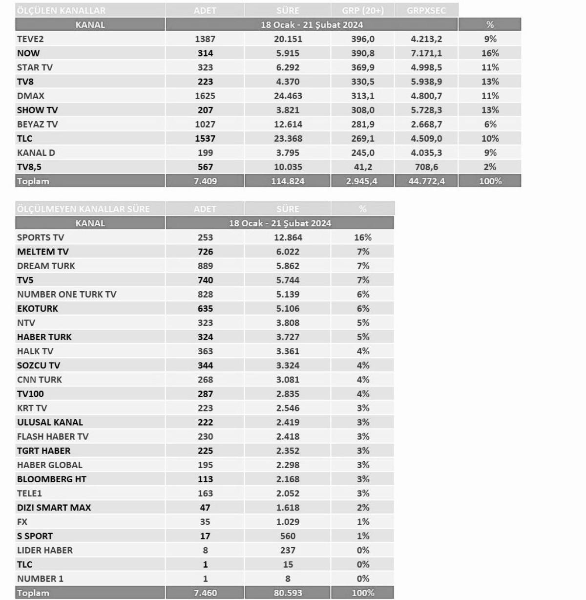 İBB tarafından hangi kanala kaç dakika, kaç adet reklam verildiğine ilişkin 100 milyon TL'lik harcamanın ayrıntılı listesi dolaşıma girdi.