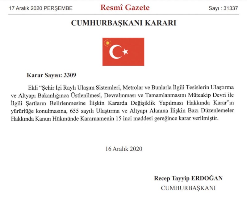 O yıllarda Cumhurbaşkanı Recep Tayyip Erdoğan tarafından imzalanan kararname ile Altunizade, Ferah Mahallesi, Çamlıca Camii ve Bosna Bulvarı'ndan oluşan 4 duraklık proje, Ulaştırma Bakanlığı'na devredildi.
