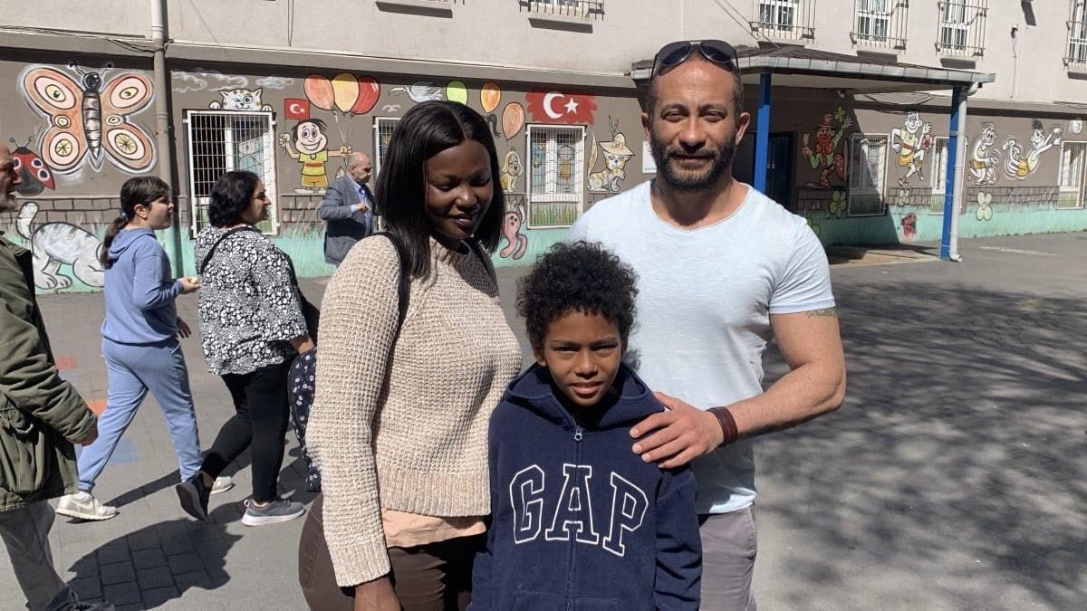 Türk vatandaşı olan Safiatou Diallo Ercan eşi Emre Ercan ve 8 yaşındaki çocukları Efe Diao ile 2024 yerel seçimleri için oy kullanmaya geldi.