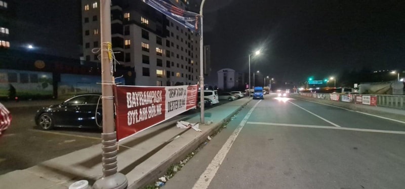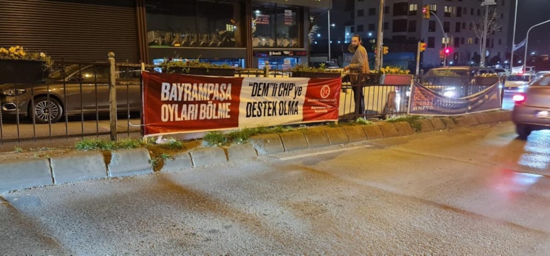 İlçenin muhtelif bölgelerinde asılan afişlerde, "Bayrampaşa'da oyları bölme, DEM'li CHP'ye destek olma" ifadeleri yer aldı.