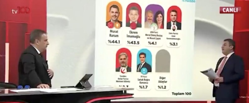 Ekrem Bey öndeydi fakat arkadan Murat Kurum aşama aşama yükselerek geldi. Ekrem İmamoğlu'nun yüzde 47'lerden yüzde 43,5'e kadar gerilediğini görüyoruz. Murat Kurum'un ise 3 farklı araştırmanın 3'ünde de yükselerek geldiğini görüyoruz. 44,1 çıkıyor. Ben iddialıyım aradaki fark 1,8'e kadar açılacak.