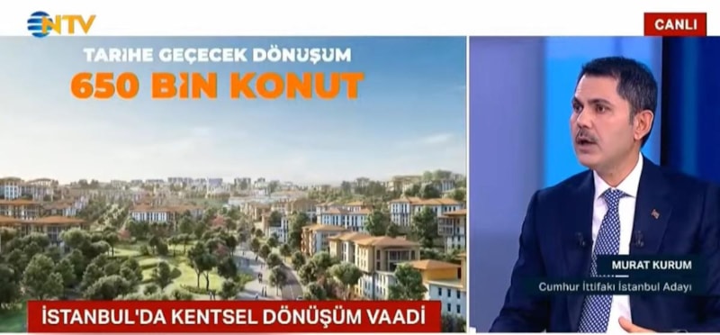 Cumhur İttifakı'nın İstanbul Büyükşehir Belediyesi (İBB) Başkan Adayı Murat Kurum, katıldığı NTV canlı yayınında, gazeteciler Seda Öğretir ve Ahmed Arpat'ın sorularını yanıtladı.