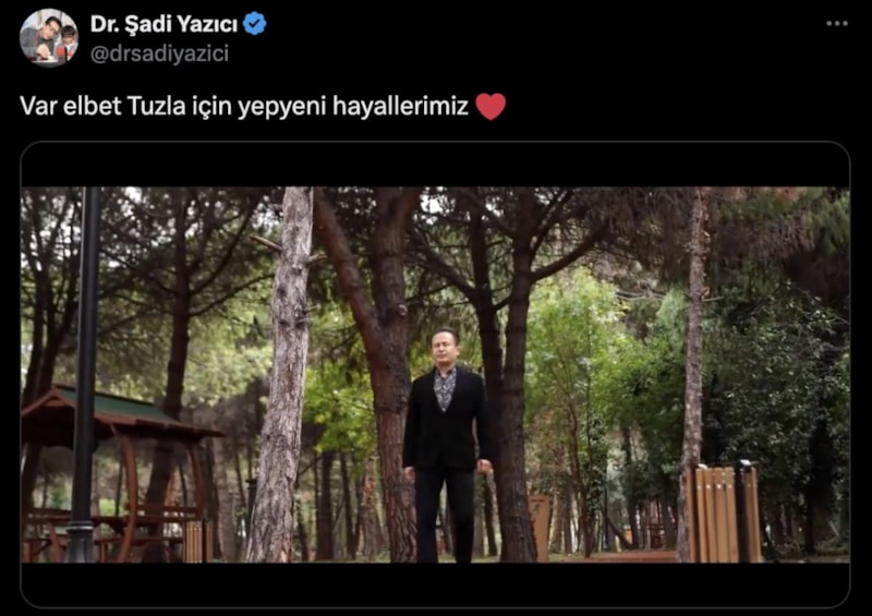 4'üncü dönemine hazırlanan Tuzla Belediye Başkanı Şadi Yazıcı'nın, "Var elbet Tuzla için yepyeni hayallerimiz" notunu düştüğü rap müzikli paylaşım beğeni topladı.