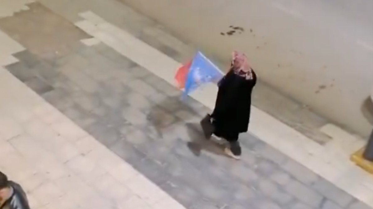 Sonuçların açıklandığı dakikalarda hangi şehirde olduğu öğrenilemeyen bir yaşlı kadın, elinde AK Parti ve Türk bayrağı ile dönüş yolunda kameralara yansıdı.