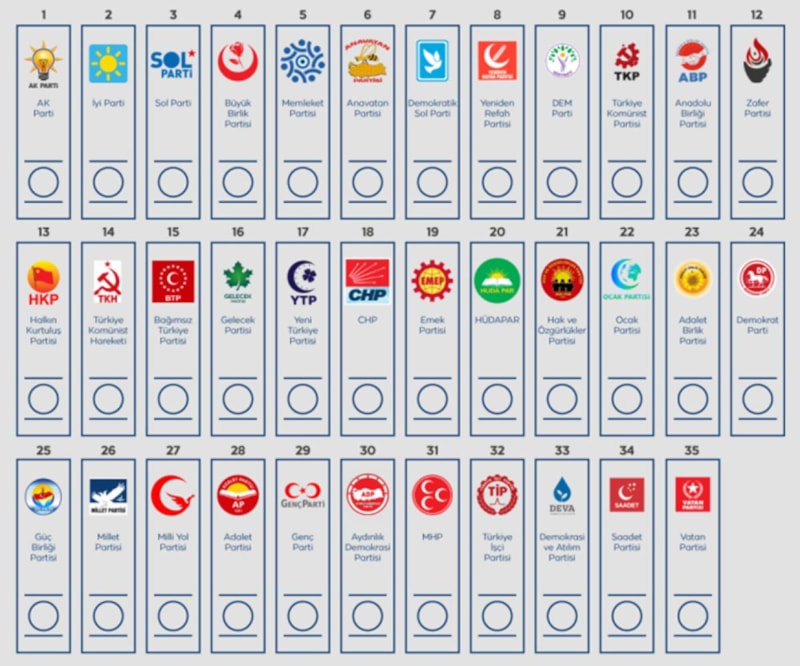 YSK'nın seçim takvimi kapsamında 27 Ocak'ta çekilen kura ile seçime katılacak 35 siyasi partinin birleşik oy pusulasındaki yerleri belirlendi.