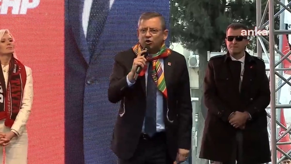 Cumhurbaşkanı Recep Tayyip Erdoğan'ı ve AK Parti hükümetini eleştiren Özgür Özel, kalabalığa dönerek "Tayyip Bey'e oy var mı?" diye seslendi.