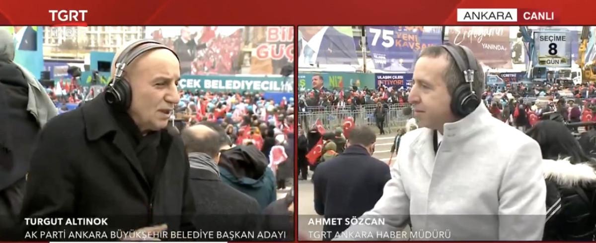 Kalabalık, Cumhurbaşkanı Recep Tayyip Erdoğan'ı beklerken, Cumhur İttifakı'nın Ankara adayı Turgut Altınok da mitingi takip eden medya mensuplarına değerlendirmelerde bulundu.