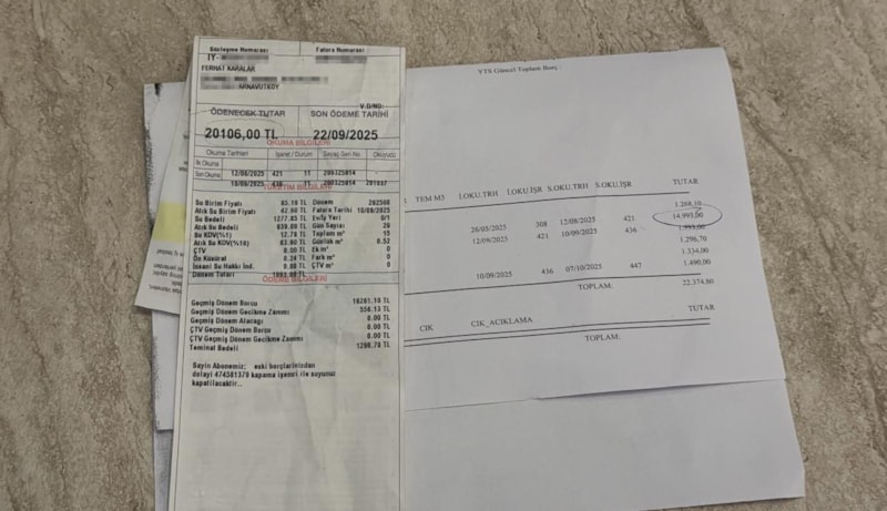 Biz kafemizi Temmuz ayında açtık, Ağustos’ta gelen faturada 15 bin TL yazıyordu. Burada iki musluk var, böyle bir su tüketimi imkansız. Aynı zamanda oto yıkamamız var, oraya bile bu kadar fatura gelmiyor. İtiraz ettik ama kimse ilgilenmedi. Hatta bugün suyumuzu kestiler. Müşterilerimiz varken ürün yapamadık, hijyen sorunları yaşadık.