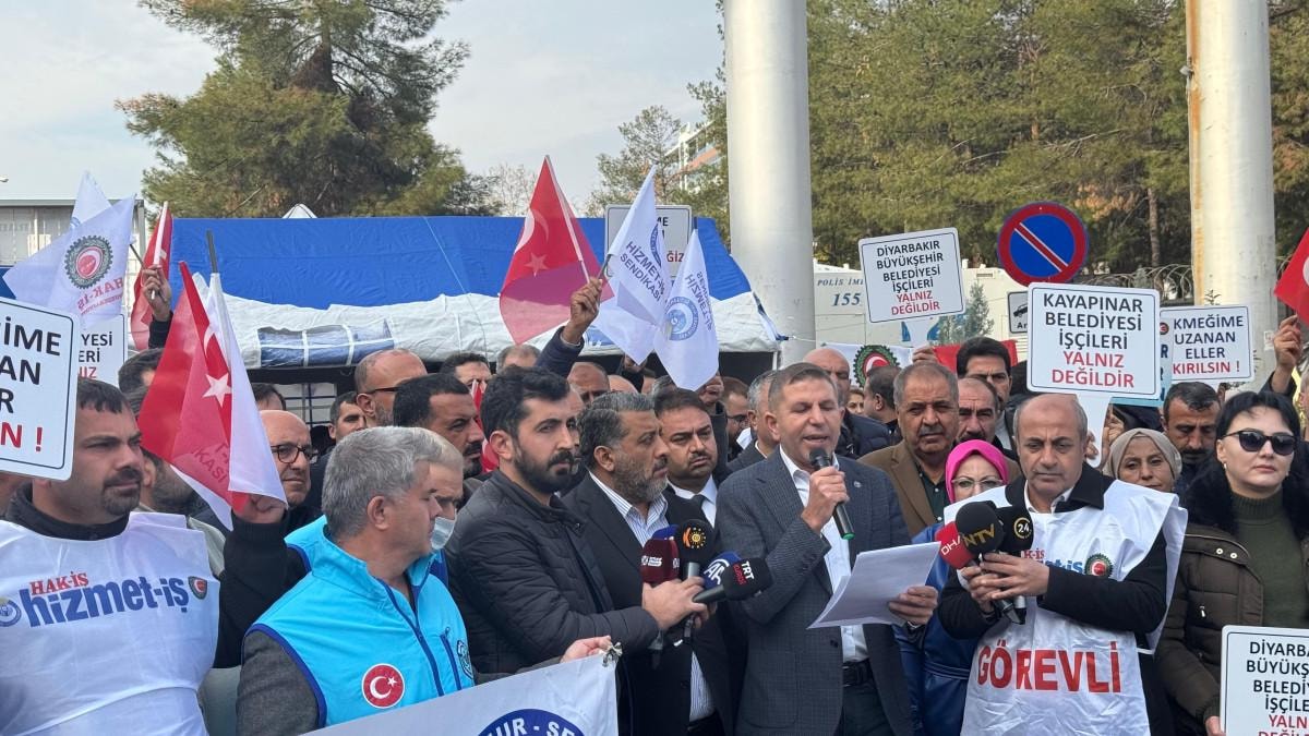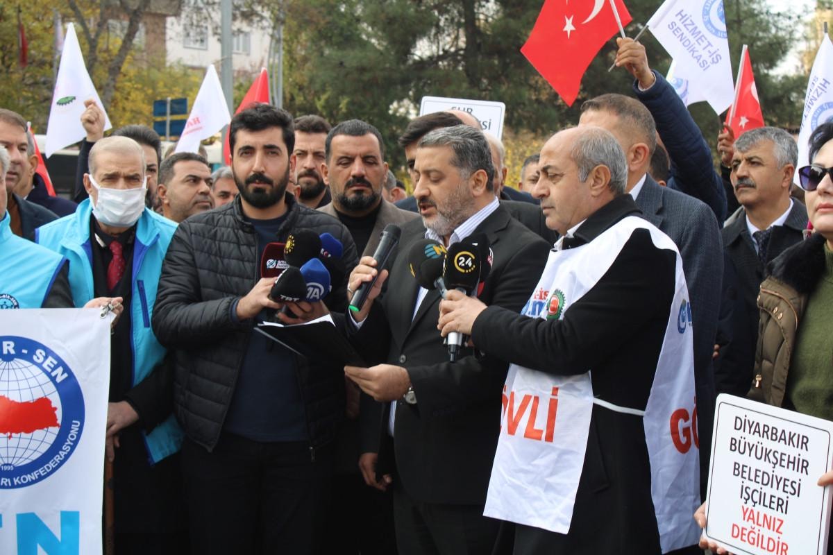 Karara tepki gösteren işçiler, Diyarbakır Büyükşehir Belediyesi önünde bir basın açıklaması yaparak seslerini duyurmaya çalıştı.