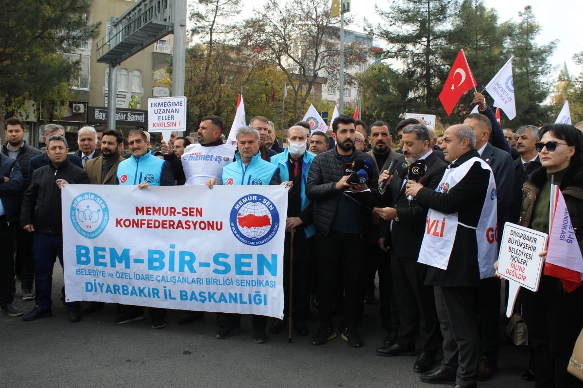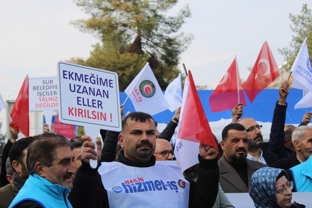 Protestoya, AK Parti Diyarbakır İl Başkanı Mehmet Raşit Ocak, Memur-Sen Diyarbakır Şube Başkanı Ramazan Tekdemir, Hizmet-İş Diyarbakır Şube Başkanı Ercan Kahraman, AK Parti ilçe başkanları, sendika üyeleri ve işten çıkarılan emekçiler katıldı.