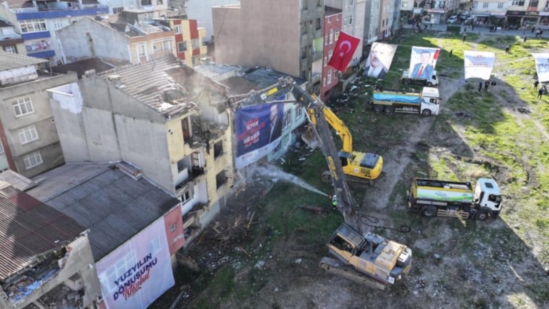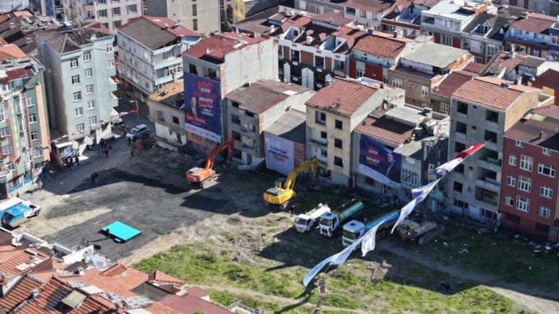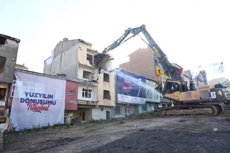 Bağcılar'da, kentsel dönüşüm çerçevesinde Yenimahalle'de yapılacak toplam 395 birimin inşa edileceği binaların yıkımı başladı.