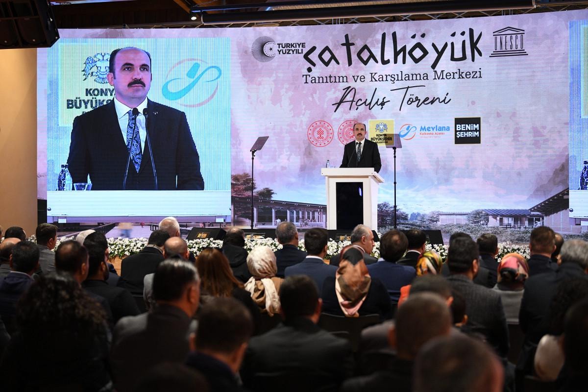 Kültür ve Turizm Bakanı Mehmet Nuri Ersoy ise Konya Büyükşehir Belediyesi ve Mevlana Kalkınma Ajansı iş birliğiyle yürütülen ve bakanlık olarak yapımına destek verdikleri Çatalhötük Tanıtım ve Karşılama Merkezi’nin Konya’da çok önemli bir ihtiyacı karşılayacağını belirterek, emeği geçenlere teşekkür ederek konuşmasına başladı.