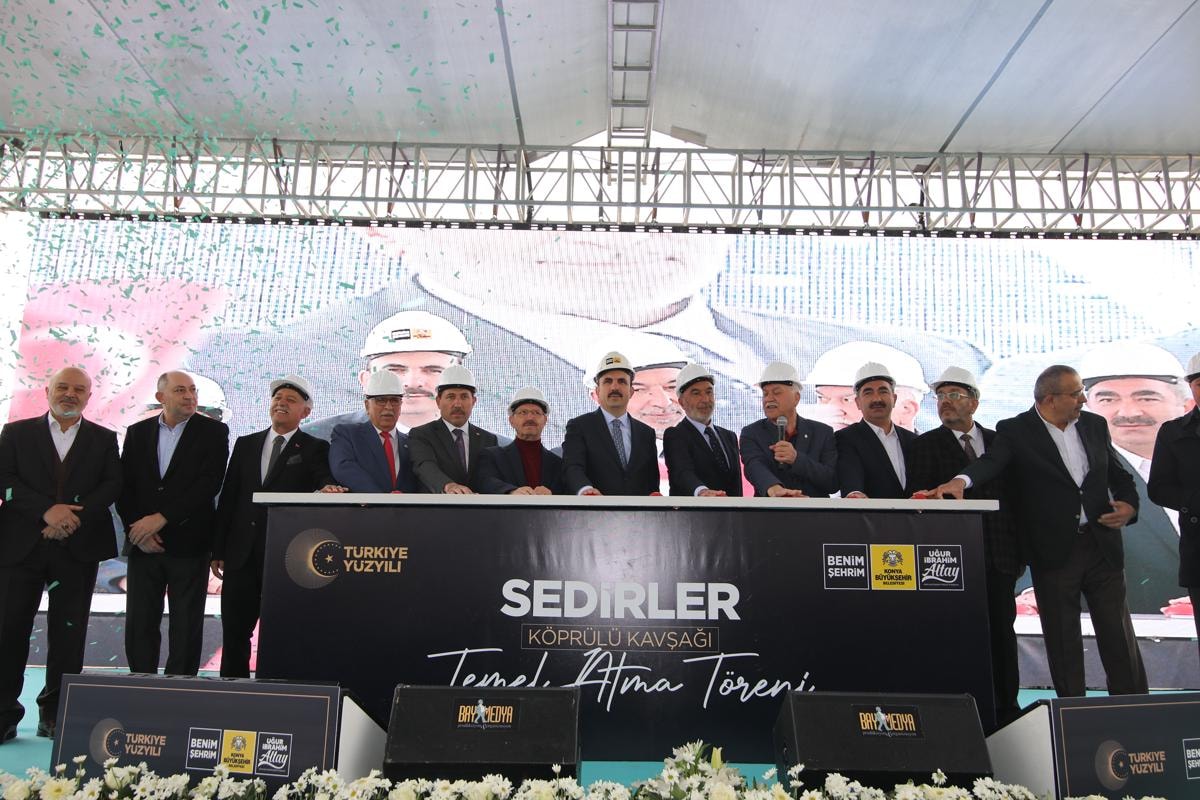 MHP Konya İl Başkanı Remzi Karaaslan, BBP Konya İl Başkanı Osman Seçgin, sivil toplum kuruluşu temsilcileri, meclis üyeleri ve vatandaşların da katıldığı program sonunda yapılan duayla Sedirler Köprülü Kavşağı’nın temeli atıldı.
