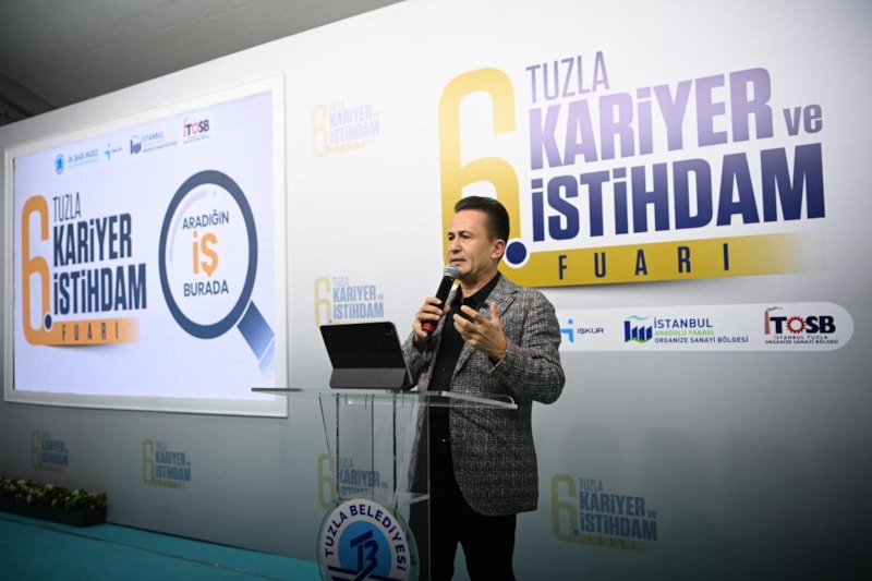 Tuzla Belediye Başkanı Dr. Şadi Yazıcı, firma stantlarını ziyaret ederek mesleki eğitim alan öğrencilere diploma ve iş sözleşmelerini takdim etti. Ardından Başkan Yazıcı, Cansu Canan Özgen'in moderatörlüğünde gerçekleşen söyleşiye katılarak kendi kariyer yolculuğunu ve Tuzla'daki istihdam olanaklarından bahsetti. Gençlere yönelik tavsiyelerde bulunan Yazıcı, deneyimlerini paylaştı.